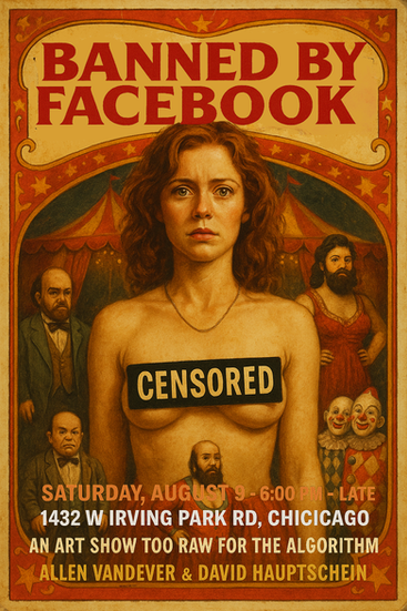 For months, I’d been making work that I could not post on Facebook without risking the digital equivalent of exile—content takedowns, account restrictions, and the ominous “under watch” status. My crime? Violating the infamous “three nipples and you’re out” policy. All AI-generated. No real nipples were harmed. But the bots don’t care.'